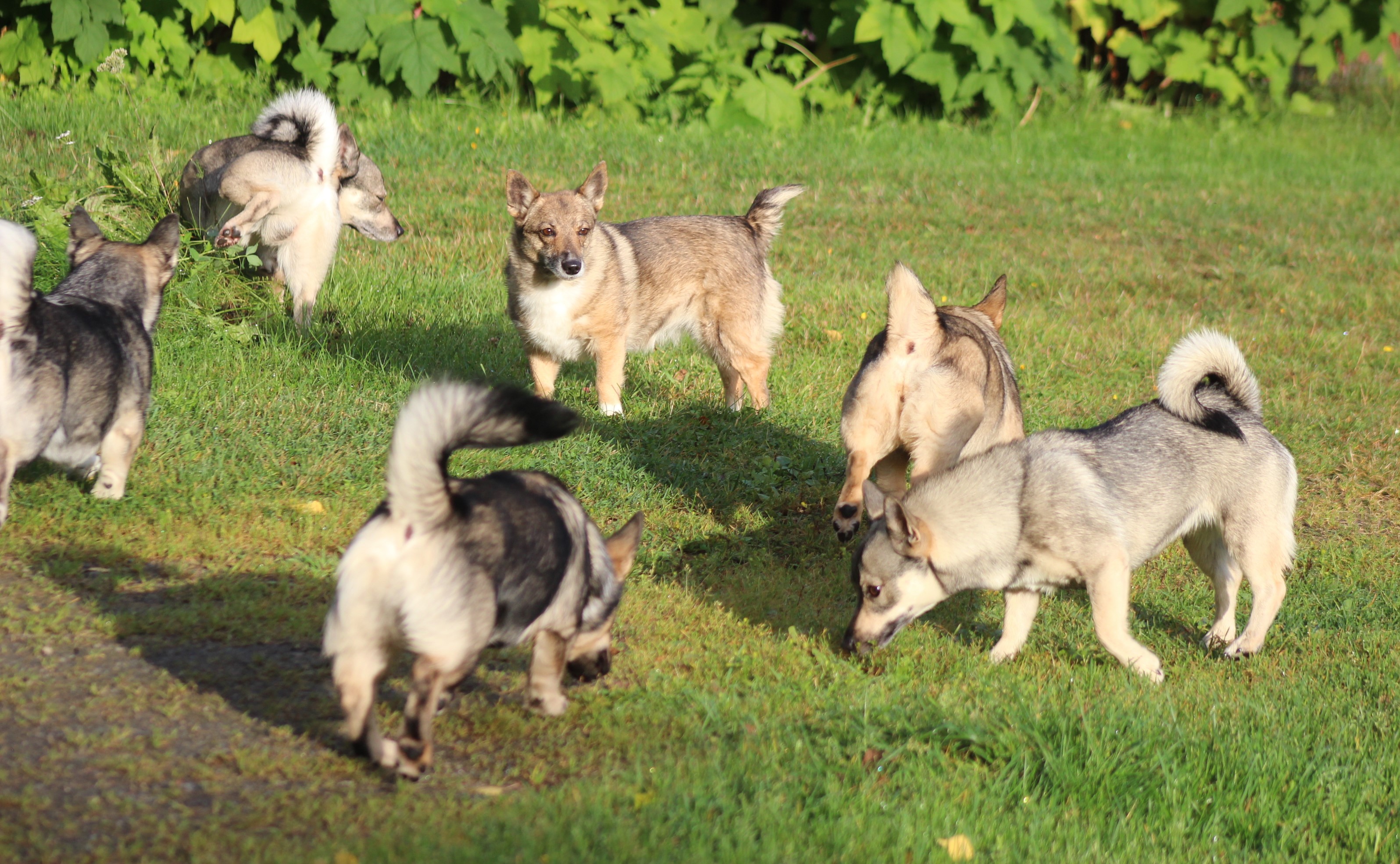Gööttineitejä on vuorotellen käynyt kylässä, että tutut ovat ihan ihmeissään meidän laumastamme. Omatkin koirat tuntuvat ihan huokaisevan välillä, että olemme vain keskenämme.